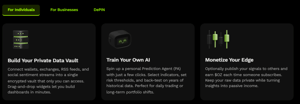 Ozak AI’s focus on breakthrough AI solutions stimulates investors’ interest in its future prospects. This platform contains AI technologies, which use real-time market data and a decentralized network to deliver reasonably accurate predicting insights for all financial markets.