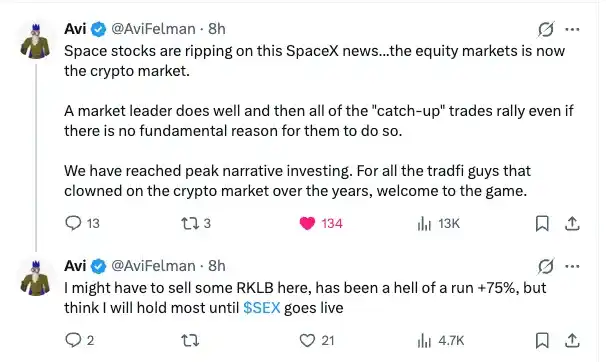 That's right, they are all stocks. Although not all stocks exhibit this characteristic, it is undeniable that more and more aspects of the stock market are becoming more 'crypto-esque.'