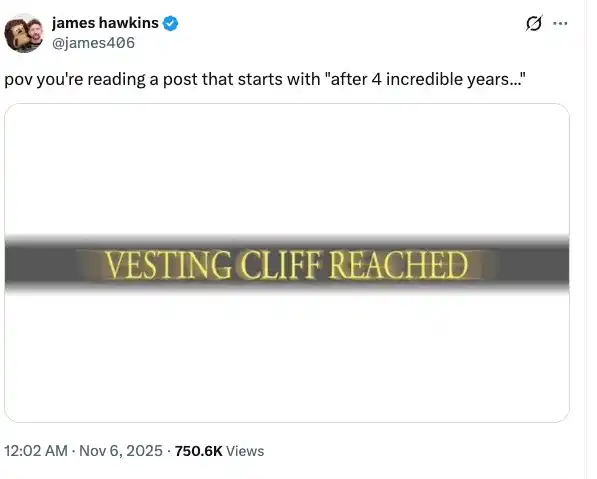 Sadly, this one did happen. Nowadays we see more and more 'departures,' often accompanied by that classic meme: 'vesting cliff is here.'