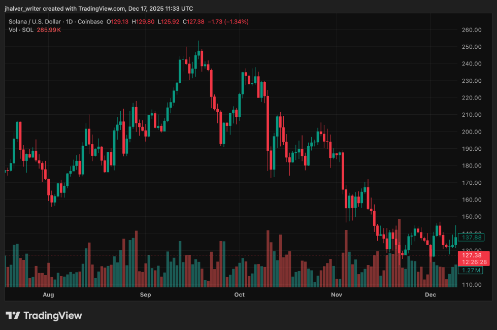 SOL's price trends to the downside on the daily chart. Source: SOLUSD on Tradingview