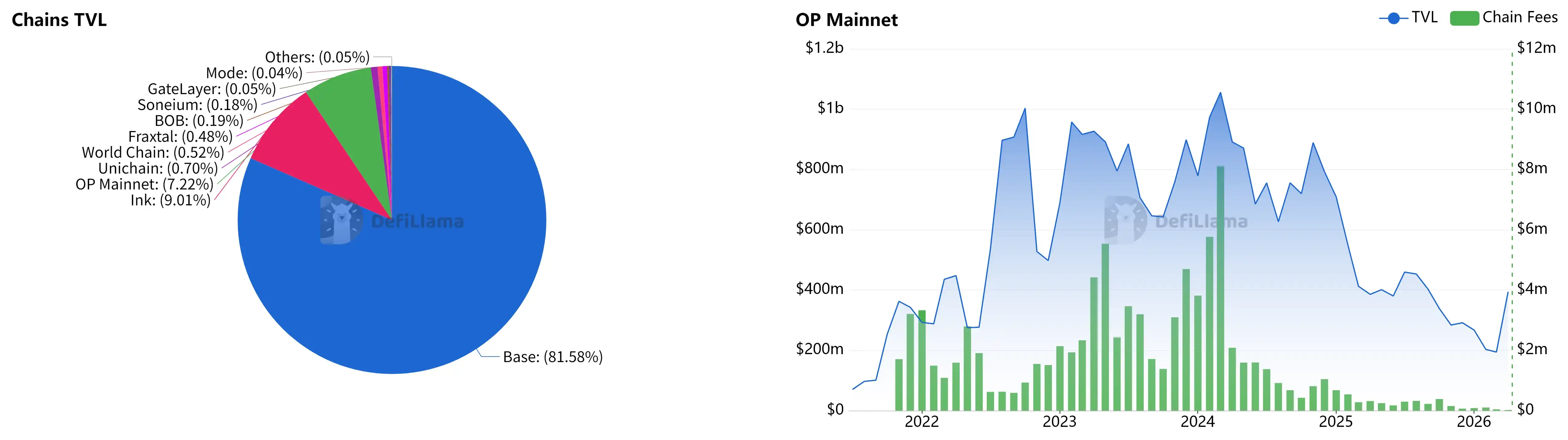 Optimism once relied on the OP Stack and Superchain ecosystem, but currently, the Superchain's TVL is highly dependent on Base (over 80%), with OP Mainnet itself accounting for only a single-digit percentage. Its TVL and on-chain fee revenue also declined significantly in 2025-2026. Making matters worse, Base announced in February 2026 that it would break away from OP Stack and transition to its own unified technology stack, further weakening Optimism's hub status in the L2 ecosystem.