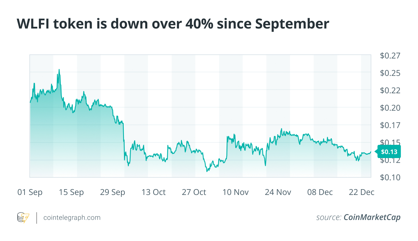 In the bull run that defined much of the 2025 crypto market, WLFI made several large cryptocurrency acquisitions. It bought millions of dollars’ worth of a basket of assets, including $21.5 million in Wrapped Bitcoin (WBTC), Ether (ETH) and Move (MOVE). As of Dec. 22, top coins in the fund also include substantial holdings of USD1, several Aave-tied assets, as well as Mantle (MNT).