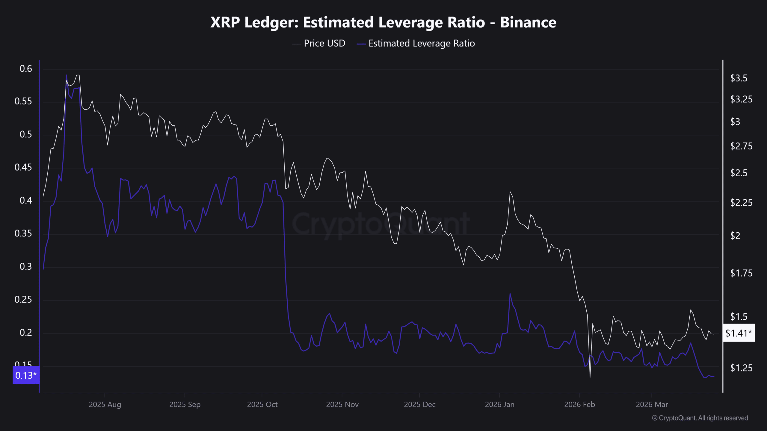 QWhat has happened to XRP's leverage ratio and what does it indicate about trader behavior?