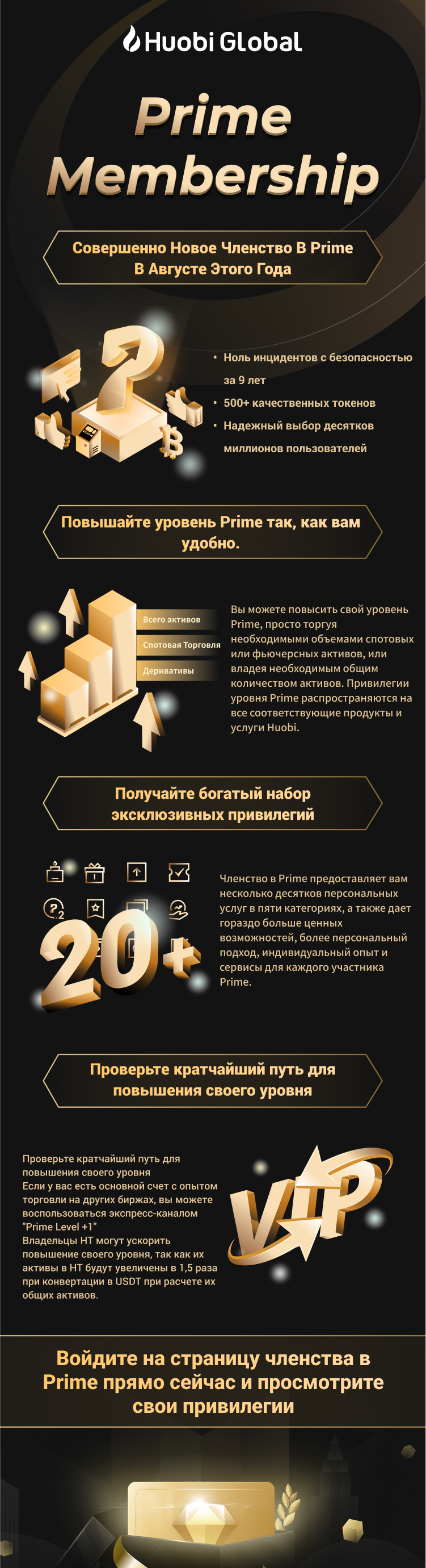 С августа 2022 года, HTX улучшила первоначальную структуру торговых комиссий и систему членства, и теперь официально открыто новое членство в Prime для всех пользователей. Надеемся вам понравится совершенно новый улучшенный опыт..