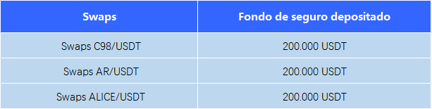 Para mejorar las capacidades contra los riesgos y asegurar los activos de los usuarios, depositaremos fondos de seguro adicionales para cada swap de nueva cotización. Los detalles son los siguientes: