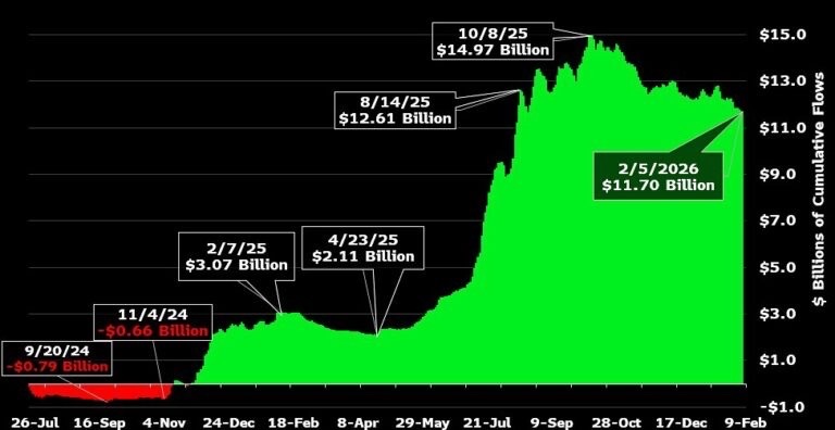 美国现货以太坊 ETF 投资者展现出了与比特币投资者类似的韧性,但据报道,他们也面临着较高的市场压力。 在加密货币价格持续下跌的情况下,彭博ETF 分析师 James Seyffart 指出,以太坊 ETF 买家的资金已从3,520美元的成本价下跌了40%。 “以太坊 ETF 持有者的处境比比特币 ETF 持有者更糟。这令人非常痛苦。” 以太坊 ETF 投资者能否承受住这种压力? 然而,Seyffart 表示,投资者曾在2025年初经历过类似的市场困境。 在2025年第一季度特朗普发起的关税战期间,以太坊价格下跌了60%,与近期跌至 1800 美元的幅度几乎相同。 有趣的是,以太坊 ETF 持有者当时几乎没有受到影响,在2025年初的熊市中,资金流出量仅约为 10 亿美元。 但这种韧性能否在 2026年的下跌中重现呢? 据 Seyffar 称,以太坊投资者虽然面临巨大的拋售压力,但仍然坚持持有。 “尽管如此,绝大多数买家仍然坚守阵地。以太坊ETF 的净流入量已从约150亿美元降至120亿美元以下。” 他补充道: “从相对角度来看,这比比特币 ETF 的抛售要严重得多,但从整体来看(目前),这些投资者仍然相当稳健。”
