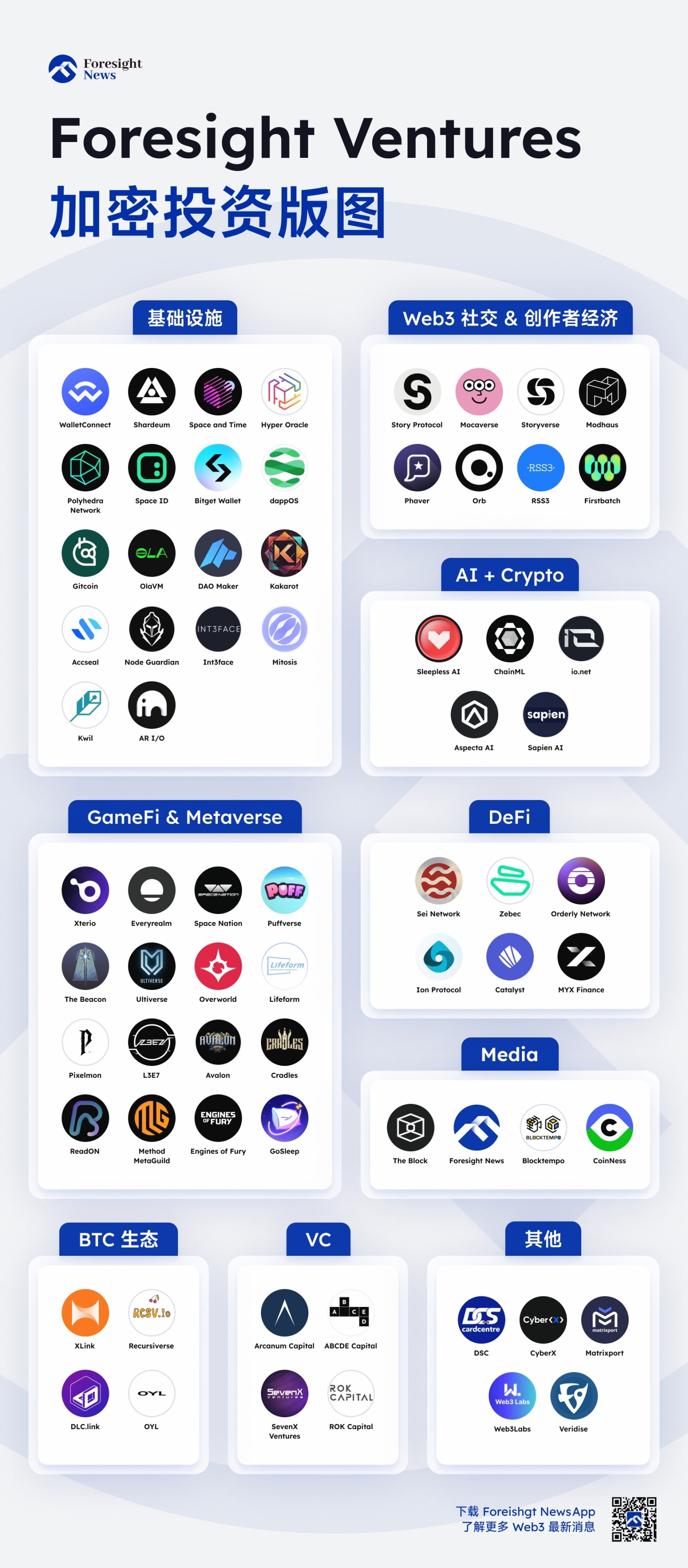 在不到 3 年的时间里,Foresight Ventures 迅速涉足多个领域,包括公链、比特币生态、Depin、DeFi、NFT、GameFi & Metaverse、Web3 社交 & 创作者经济、基础设施、AI & Crypto、媒体、VC、资管等诸多赛道,与 Solana、Aptos、Sui、NEAR、Flow、Avalanche 等公链网络有密切合作。尤其在 GameFi 与 Metaverse 以及 Web3 社交与创作者经济领域,Foresight Ventures 积累了丰富的投资经验,为项目的成长与创新注入了独特的动力。