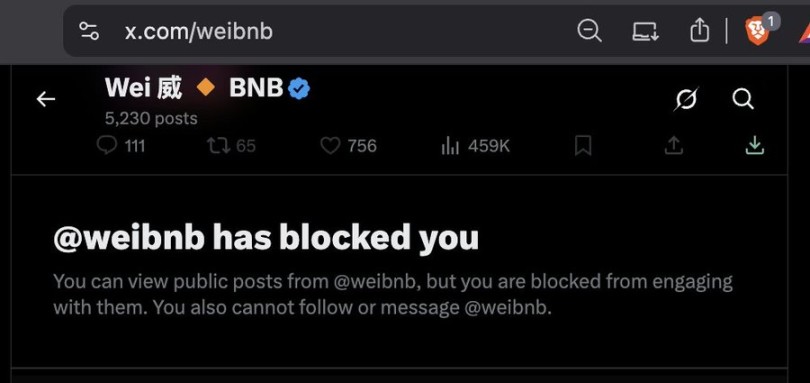 What’s even more intriguing is that this account, with 863,000 followers, had already blocked CZ.