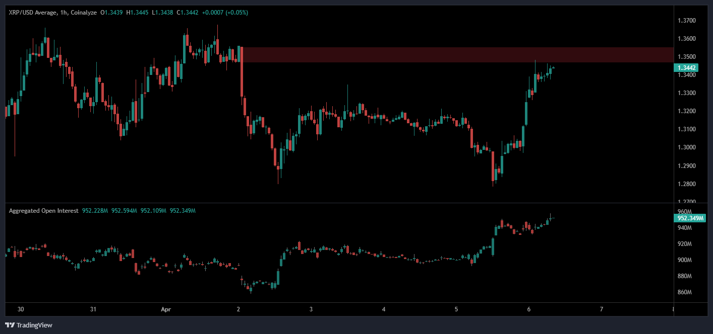 At the time of writing, XRP is floating around $1.35, unchanged from one week ago.