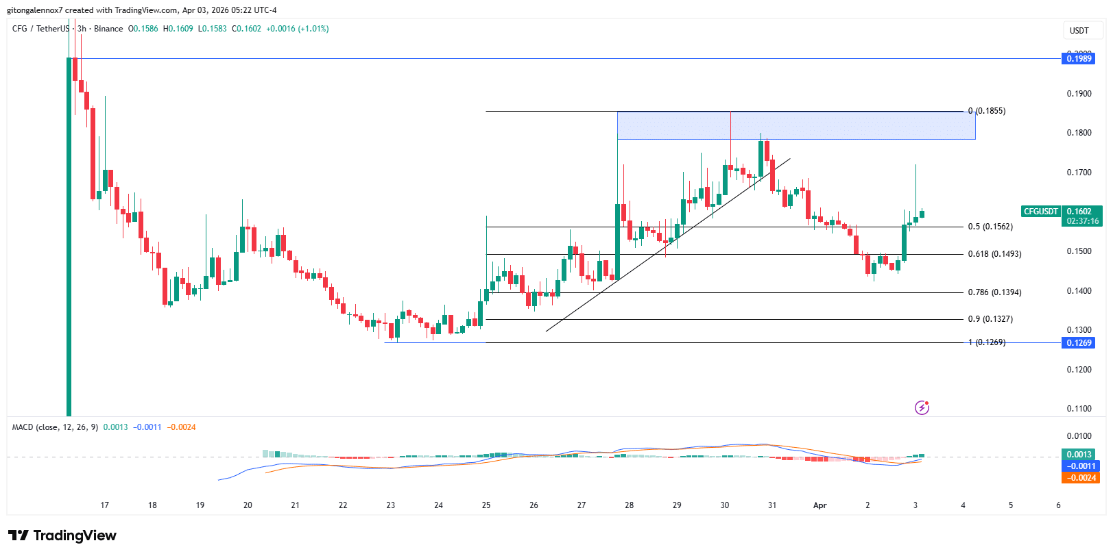 CFG bounced off the zone between 0.618 and 0.786 Fibonacci Retracement levels. To be specific, the altcoin respected the optimal zone at the 0.75 Fib level but seems to be seeing rejection around $0.17.