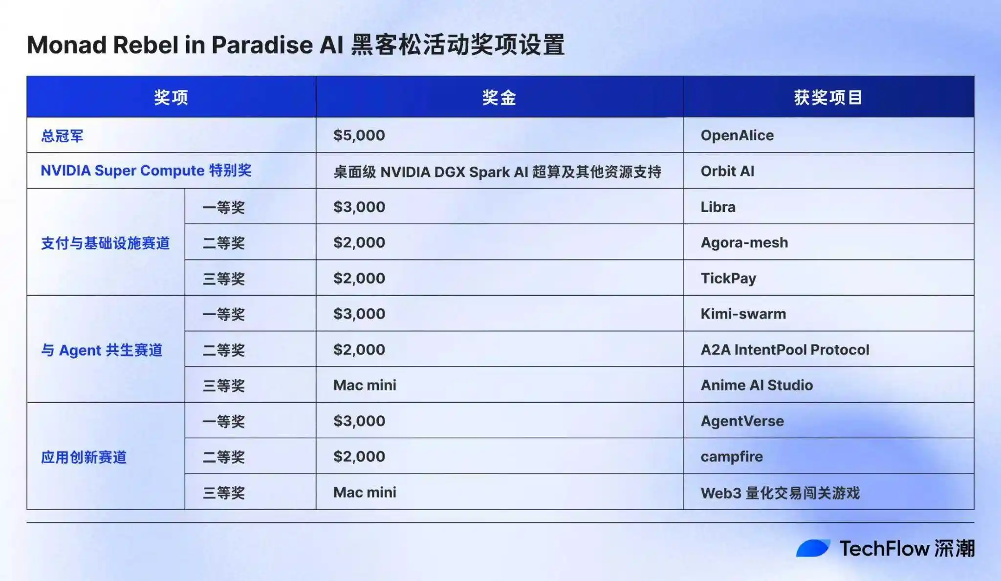 And to present the answer more spectacularly, Monad did not skimp on resources: participants not only got to interact directly with leaders in LLM, infrastructure, and agent fields, as well as VCs, but also competed for a total prize pool of over $40,000, with $20,000 in cash prizes and $20,000 in creative and resource support, including free trial credits for cutting-edge models, development tools, and infrastructure.