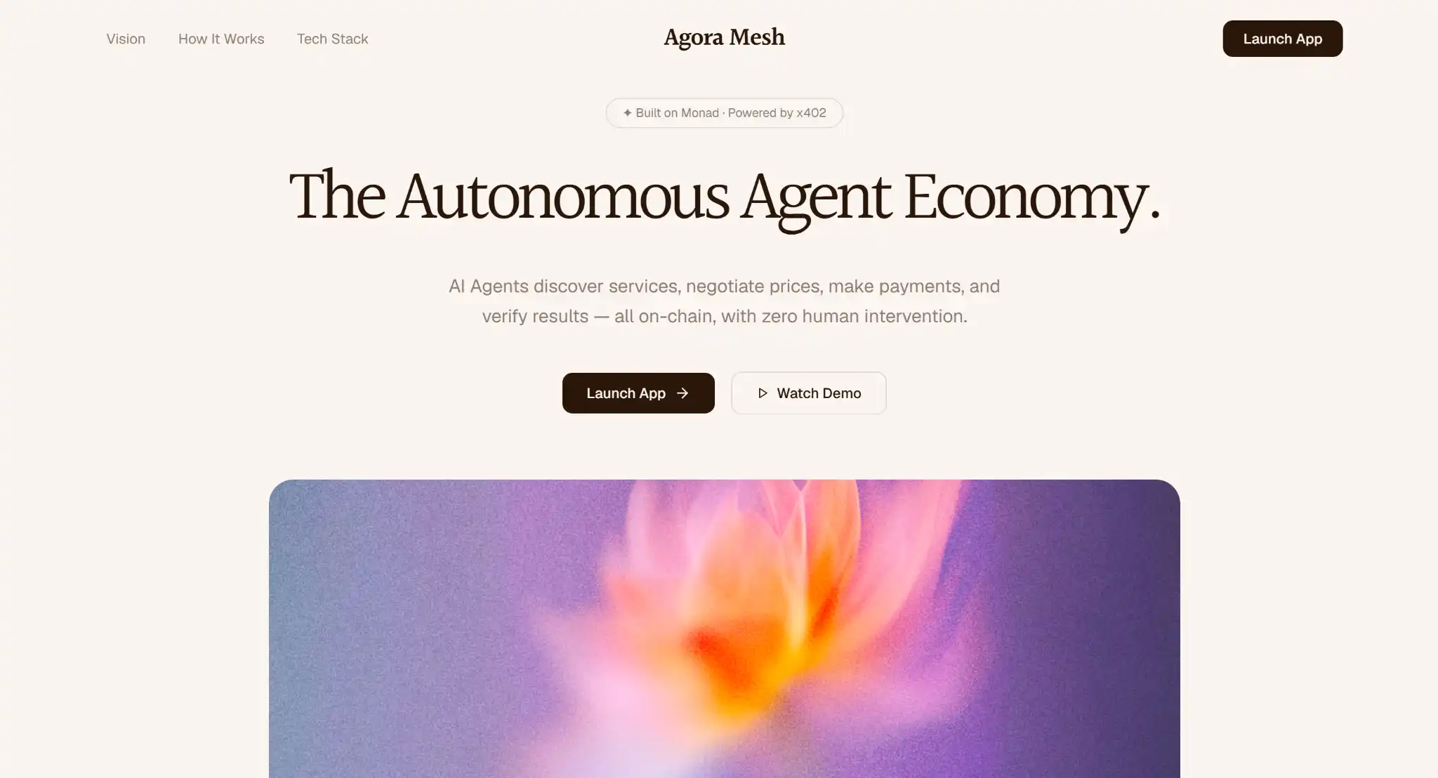 Agora-mesh aims to allow Agents to discover services more smoothly and complete settlements on-chain using MON,致力于 (committed to) significantly lowering the payment threshold for Agents and achieving seamless machine-to-machine service transactions.