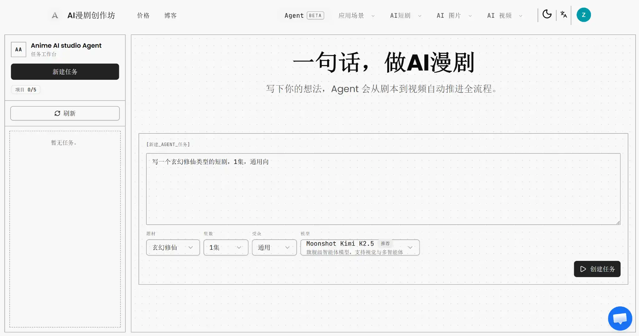 Anime AI Studio is a one-stop anime short drama generation Agent capable of打通 (connecting) the entire process from创意 (idea), script, storyboard, keyframes to shot-level video generation. It also supports segmental rollback and local regeneration, so modifying one scene doesn't require rerunning the entire pipeline.