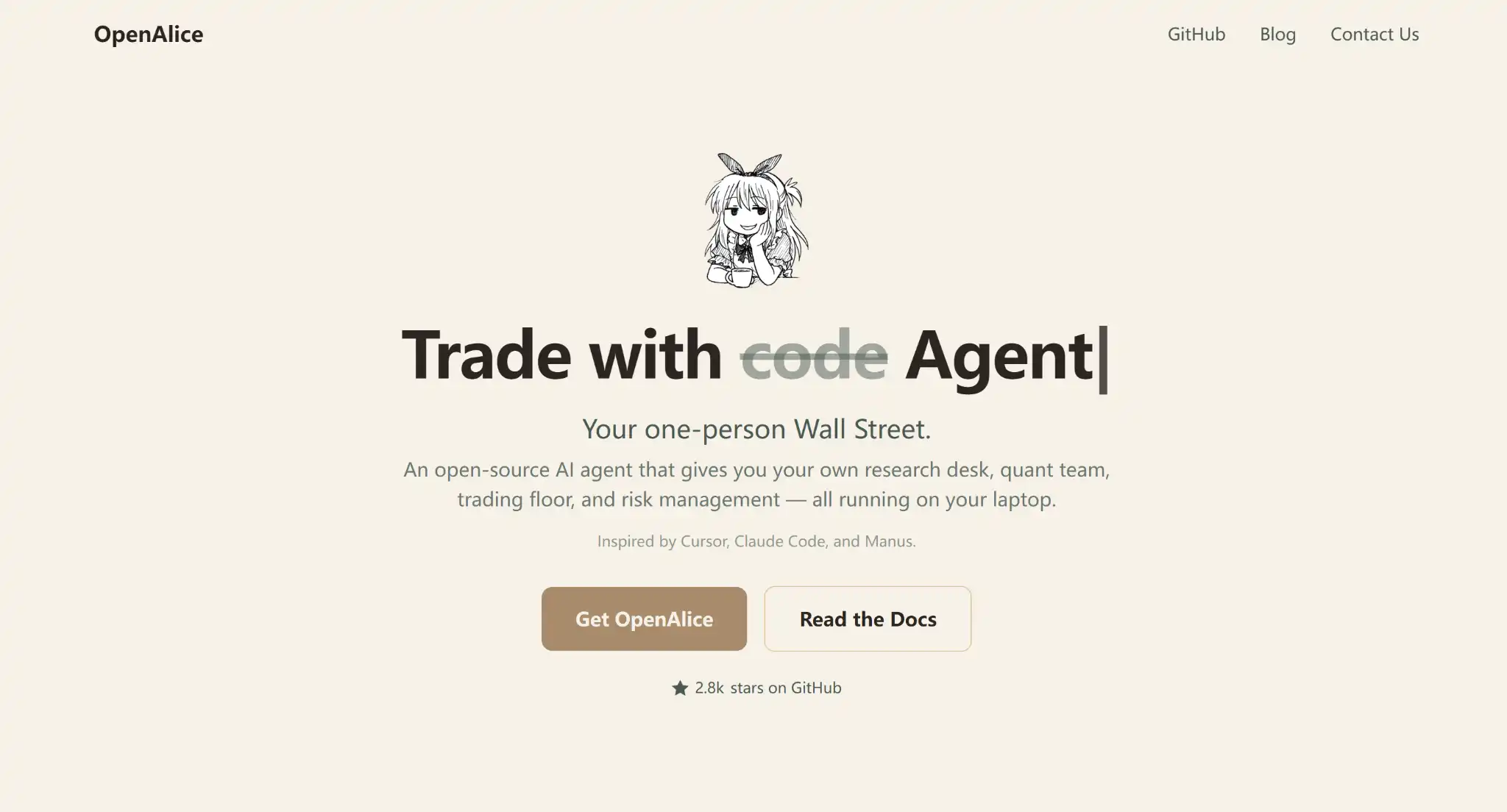 OpenAlice is a trading Agent that can run locally, capable of combining processes like research, strategy, execution, and risk control into one transparent, collaborative workbench.