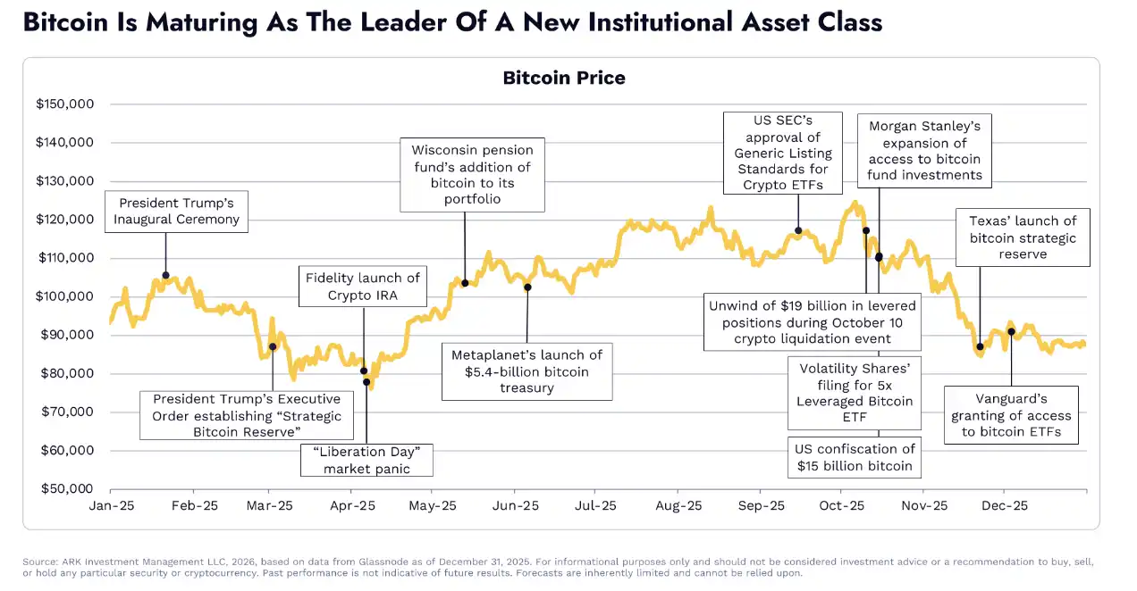 The chart above shows the Bitcoin price trend throughout 2025 and the timeline of major Bitcoin-related events. From Trump's inauguration speech in early 2025 to the Bitcoin Strategic Reserve to Vanguard's engagement with Bitcoin ETFs at the end of the year.