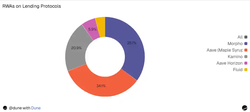 Credit assets dominate due to their profit model. Maple's syrupUSDC yields about 6%, while Treasury Bills (T-Bills) yield about 3.5%. When your collateral earns 6% and you can borrow stablecoins at 3%, you achieve positive carry. Curators like Gauntlet build explicit looping strategies on top of this: deposit RWA as collateral, borrow against it, and buy more. This is designed and risk-controlled leverage. This also explains why credit assets appear on every major lending platform: $957 million on Morpho, $929 million on Aave, $476 million on Kamino.