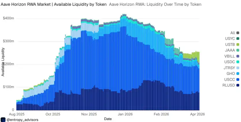 The dominance of high-yield credit might be partly a function of timing. Aave Horizon provides the clearest evidence.