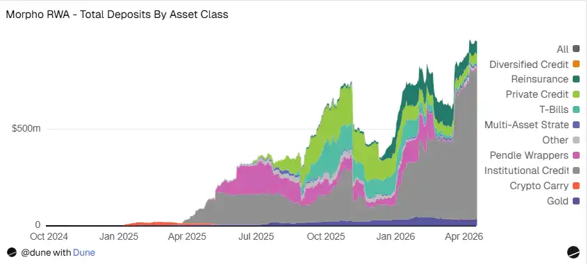 • Morpho ($957 million): Permissionless, listing 41 RWA assets across 10 chains. Professional curators like Gauntlet and Steakhouse manage vaults, allocating funds to these markets and building structured leverage strategies on top of tokenized RWAs.