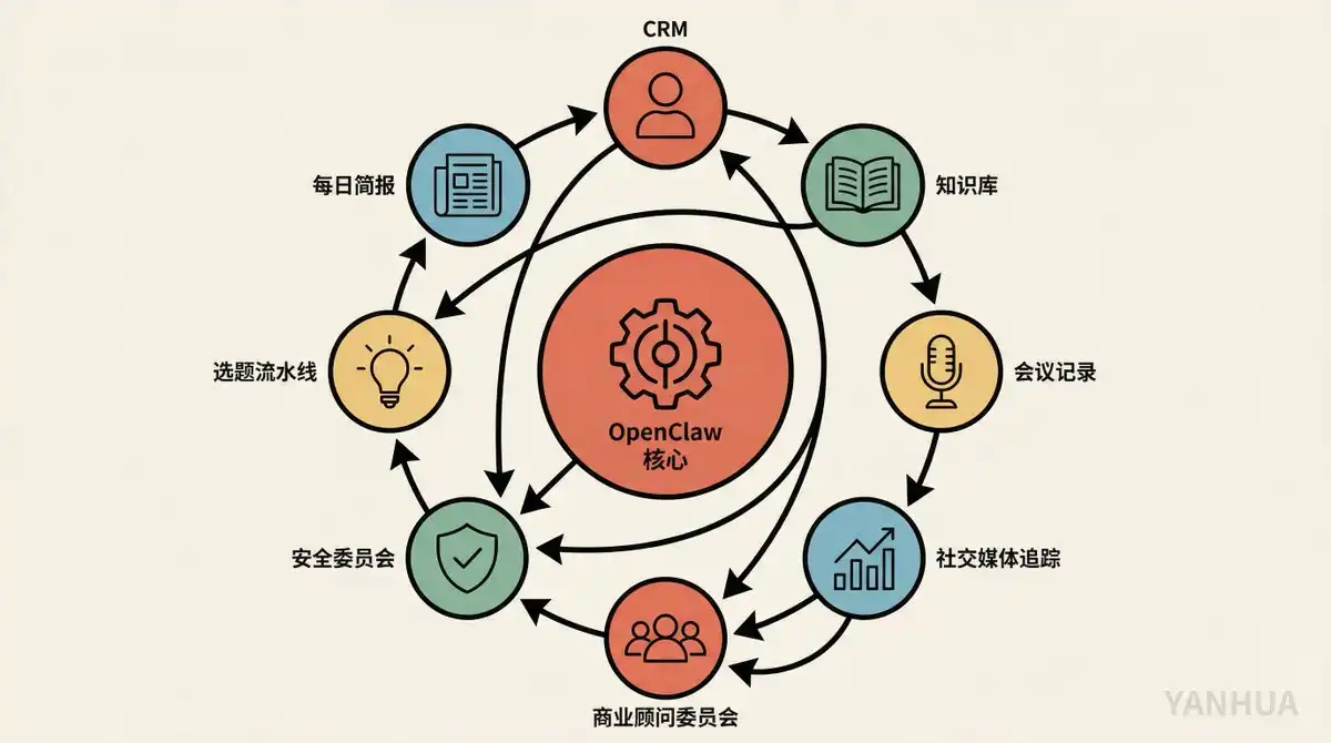 Matthew Berman recently released a video where he lays out all the use cases he's built with OpenClaw. No concepts, all practical application. CRM, knowledge base, business advisory board, security review, social media tracking, video topic pipeline, daily briefings, food diary... One person, one MacBook, doing the work of a small company's mid-office team.