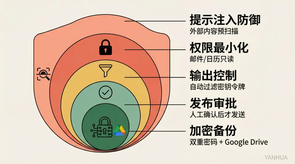 Minimal Permissions: Email, Calendar read-only, no write permissions