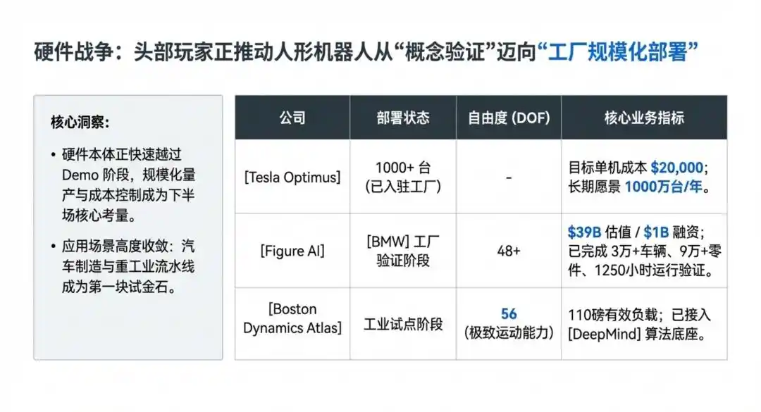 Demo ≠ Deployment. As industry insiders共识 (consensus) at Davos 2026: the gap between a spectacular demo and a system that can run 10,000 times consecutively without error is much larger than the宣传暗示 (publicity implies). Figure 02 did participate in the production of 30,000 cars at the BMW factory, but it performed relatively standardized parts handling, not dexterous assembly.