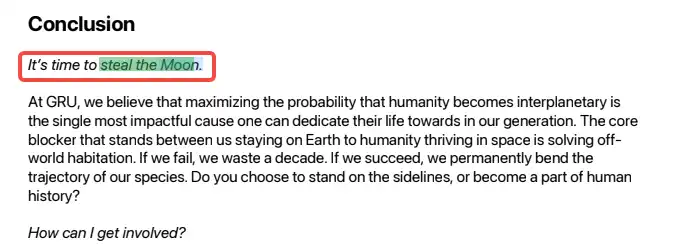 The company is named GRU. The white paper ends with: "It's time to steal the Moon."