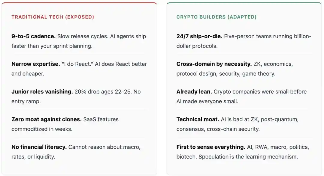 The difference is: the crypto industry has endowed you with a set of capabilities most builders don't have: all-weather cross-domain pattern recognition, a permissionless innovation sandbox, lean teams that can launch quickly without approval, and the community that absorbs new technologies the fastest globally.