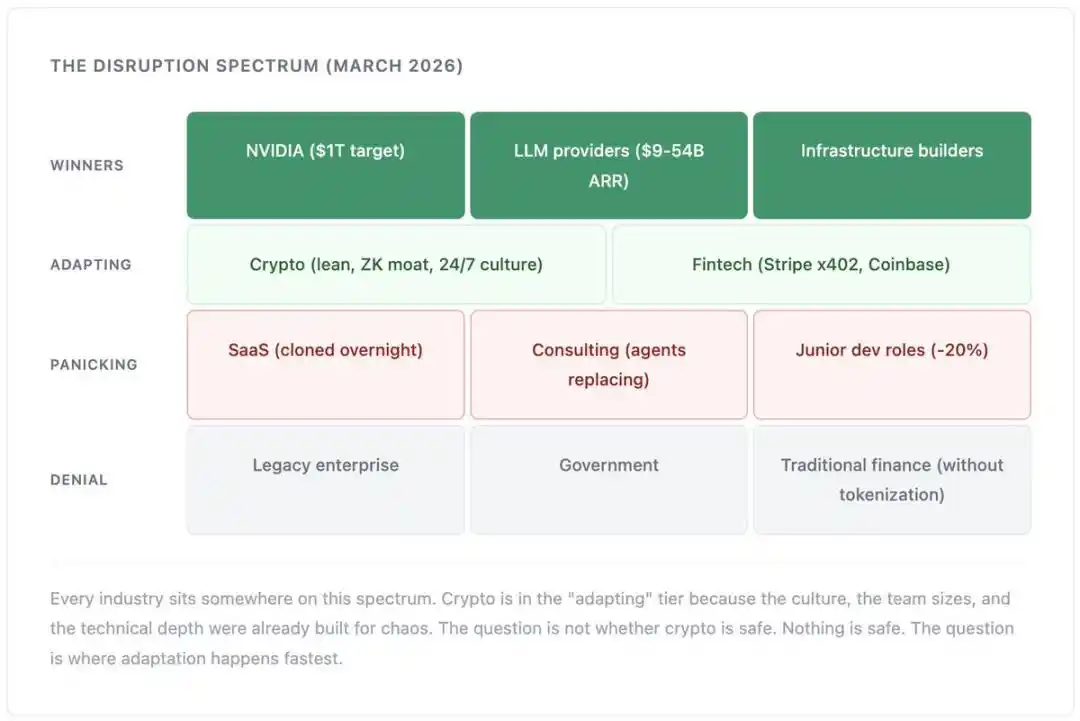 This is the real fear, not 'crypto has no use cases.' What is truly unsettling is that Claude Code, Codex, Gemini Code Assist are already so powerful that most junior software development roles are being replaced.