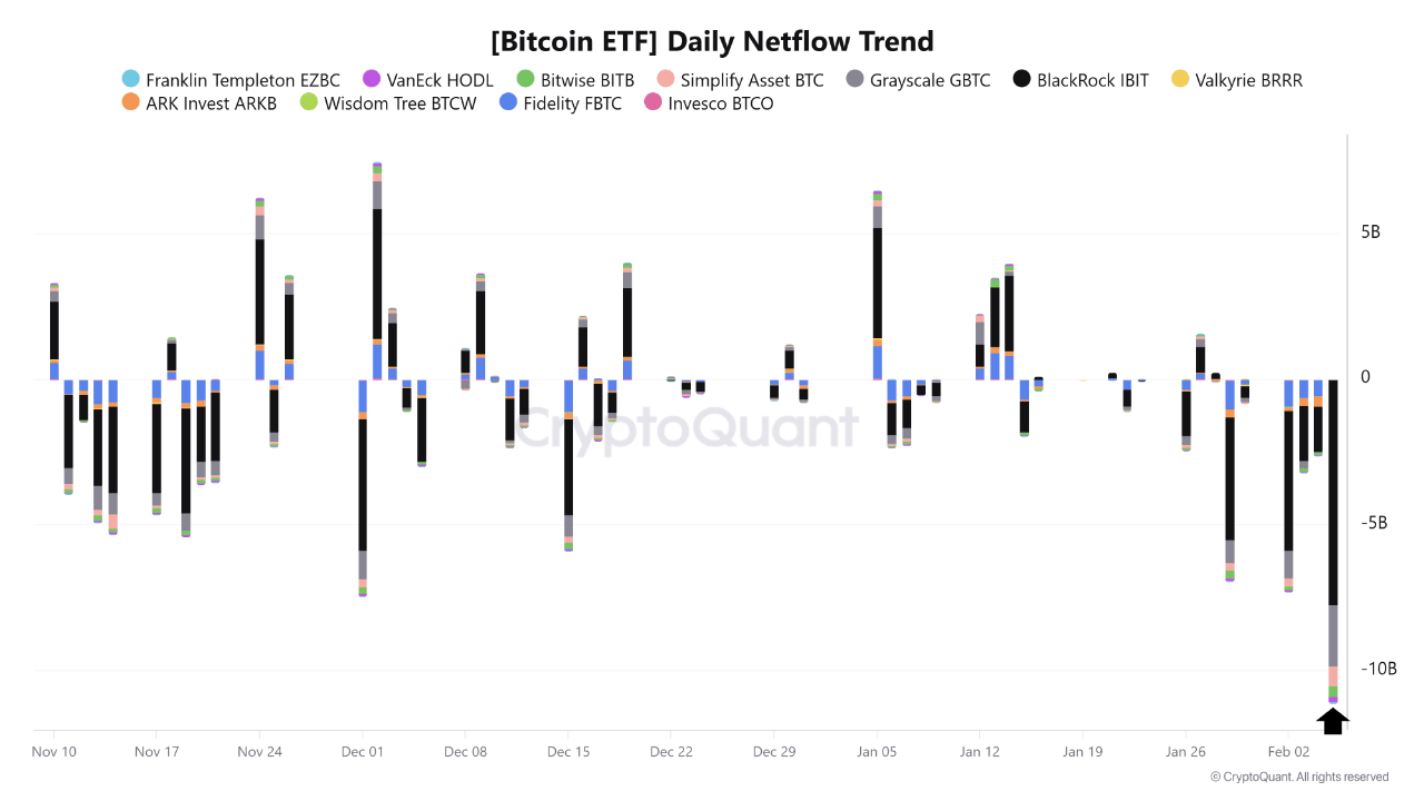 Analyst Amr Taha stated that IBIT experienced a massive outflow on two different occasions in the last week. The first event occurred on the 2nd of February, when investors redeemed $4.7 billion, and then on the 5th, with $7.7 billion, making over $12.4 billion in total. Also, Grayscale’s GBTC was said to have recorded a $2.1 billion outflow during this period.