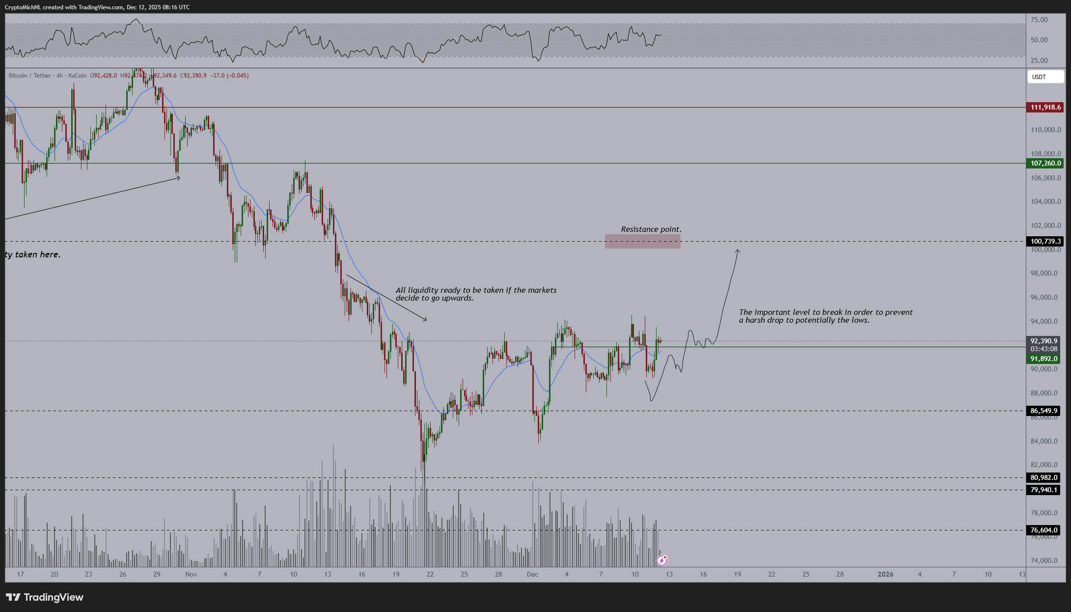 BTC/USDT four-hour chart with RSI, volume data. Source: Michaël van de Poppe/X