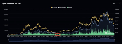 QWhat does the current Open Interest data for Bitcoin, as cited in the article, suggest about the market compared to the last cycle's bottom?