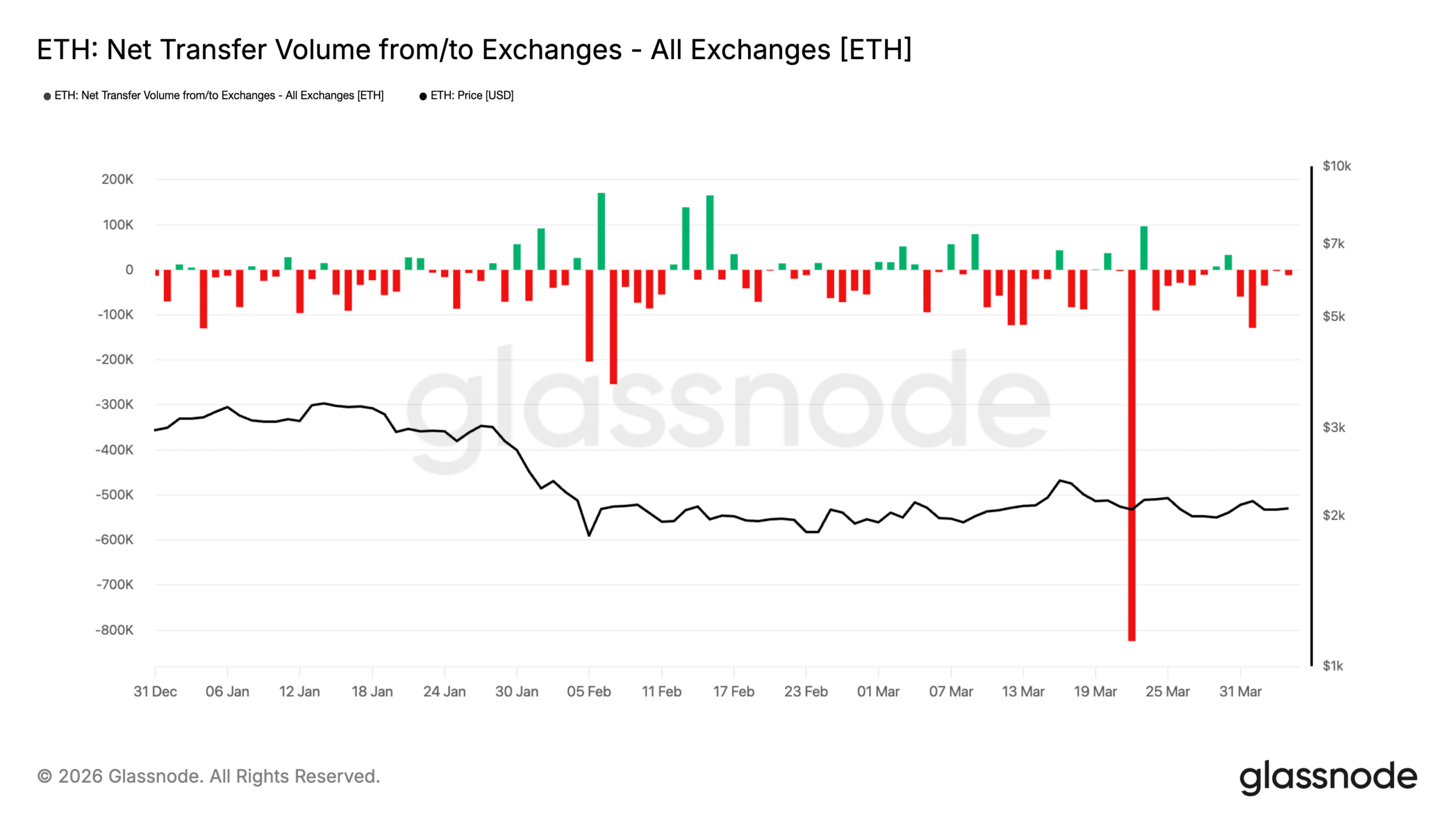 Additionally, the ETH’s Net Transfer Volume from or to Exchanges chart shows that investors are pulling in ETH off exchanges despite price weakness, indicating bullish long-term signals.