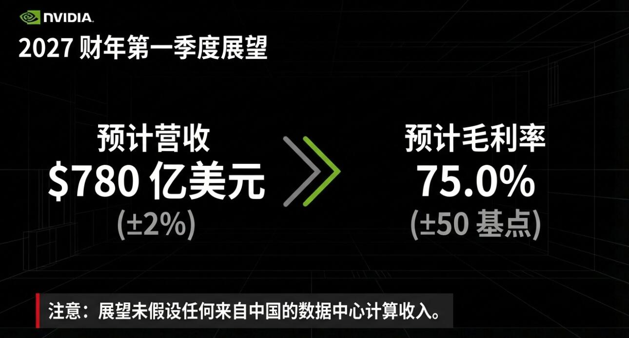 Even more encouraging for investors was that Nvidia's guidance for the first quarter of fiscal year 2027 (Q1) was also stronger than expected. Revenue is expected to reach another new high, with the midpoint of the guidance range being 7.1% higher than the analyst consensus expectation midpoint, and even 4% higher than the buyers' optimistic expectations. The year-over-year growth rate accelerated to nearly 77% compared to Q4. Nvidia pointed out that this guidance excludes data center compute revenue from the China market.