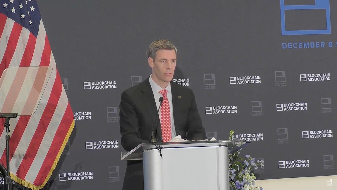 Comptroller of the Currency Jonathan Gould giving remarks at the 2025 Blockchain Association Policy Summit. Source: YouTube