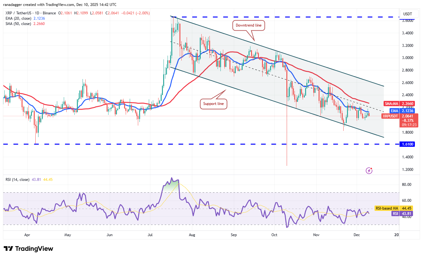 XRP (XRP) has been trading below the 20-day EMA ($2.12) for the past few days, but the bears have failed to sink the price to the support line of the descending channel pattern.