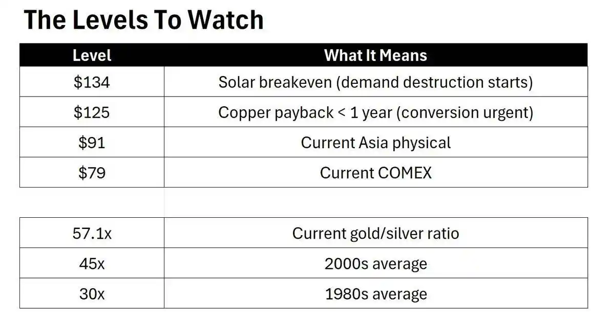 Silver prices are rising faster than factories can be retrofitted. The 4-year window is a protective umbrella for the silver bull thesis: silver has 70% upside before demand destruction is triggered, and even if copper substitution starts today, it cannot catch up with silver’s rally in the short term.