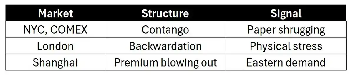 Meanwhile, the COMEX paper market remains in lazy contango, pretending everything is fine.