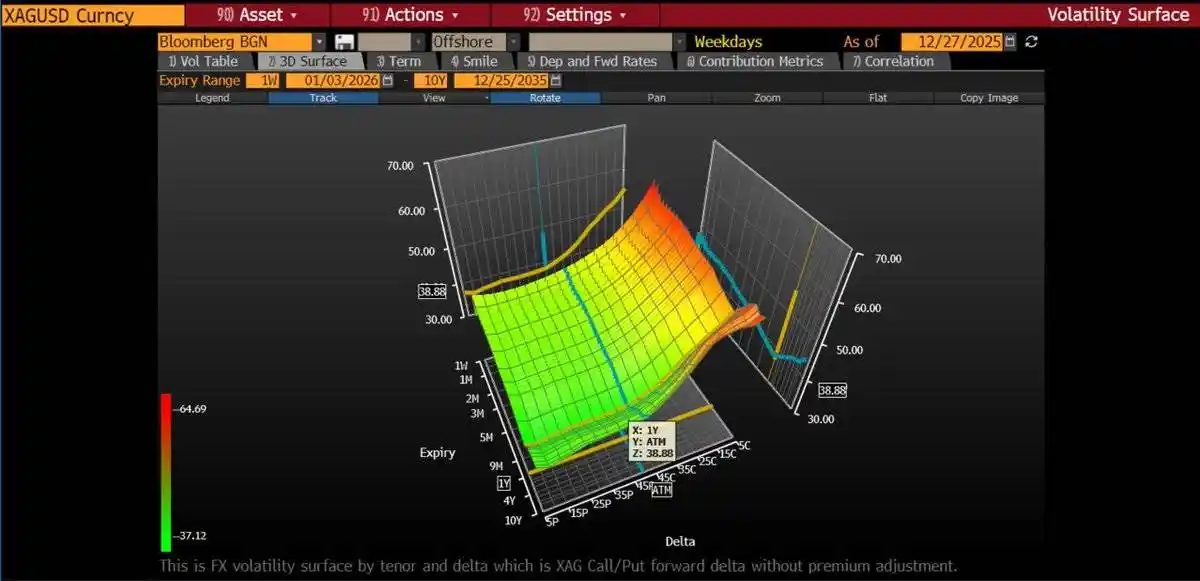 At-the-money (ATM) option implied volatility has risen year-over-year from 27% to 43%. Call option implied volatility is even steeper—out-of-the-money (OTM) strike options have implied volatility as high as 50-70%. This indicates that the options market is pricing in tail risks of大幅 price increases.