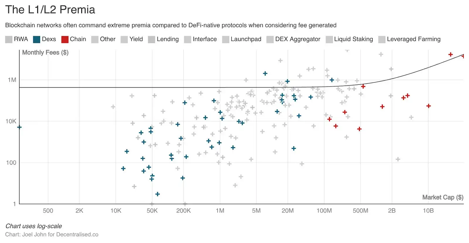 Historically, L1s and L2s have traded at extremely high premiums compared to standalone infrastructure or projects. If this premium had been well invested, it could have created new economic systems. It could have funded developers to build applications that truly matter to ordinary people outside the industry. However, the open-source nature of products and the ease of tokenization led to having fifty copies of the same product on thirty networks,破坏组合性.