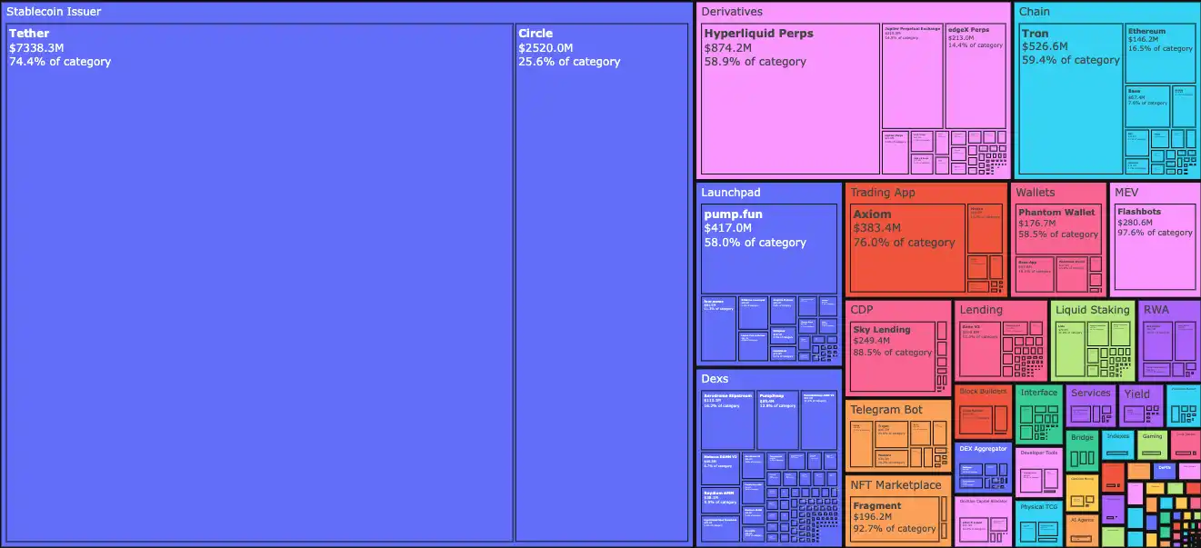 These two areas alone contributed $575 million in fees by January 2025. Given consumer demand, this is understandable. Meme coin trading and perpetual contracts allow users to profit quickly. In pursuit of quick returns, they are willing to pay high fees. This category grew from 1% of total revenue in 2022 to just over 15% in 2025.