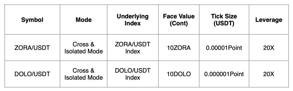 HTX has launched ZORA/USDT and DOLO/USDT perpetual futures, which supports 1-20x leverages for long and short trades.