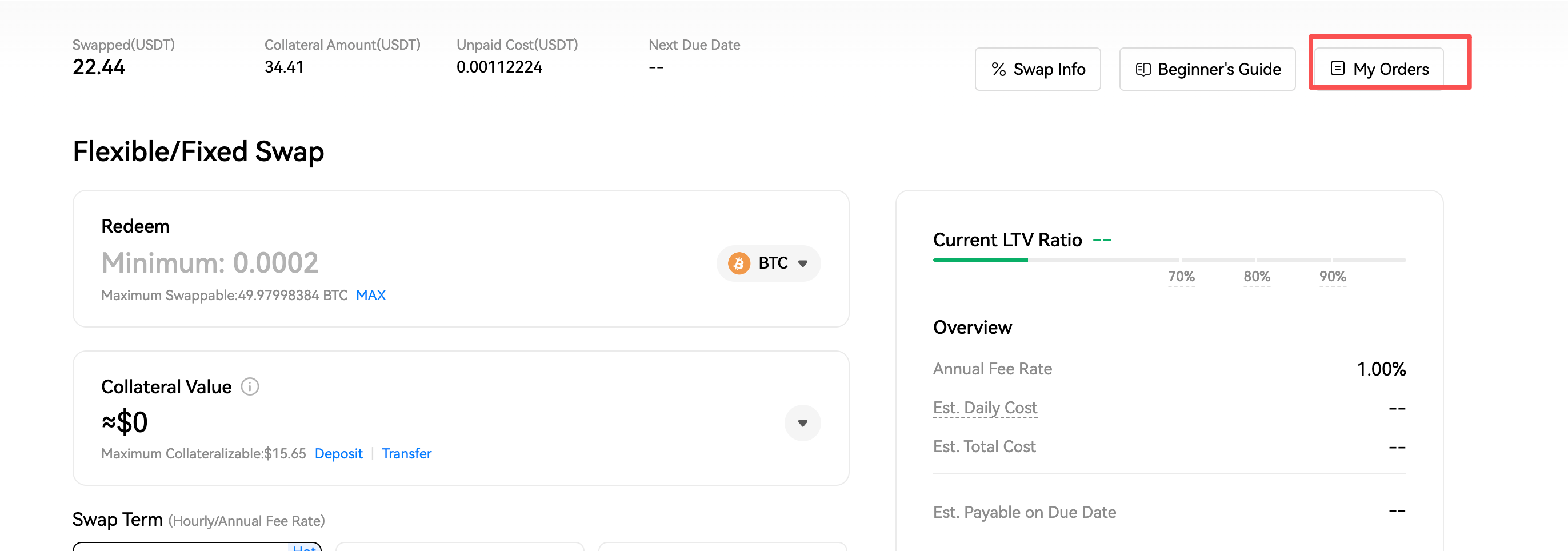 For PC users: Log into your HTX account > Loans > Collateral Swap. (Real-name verification is required.)