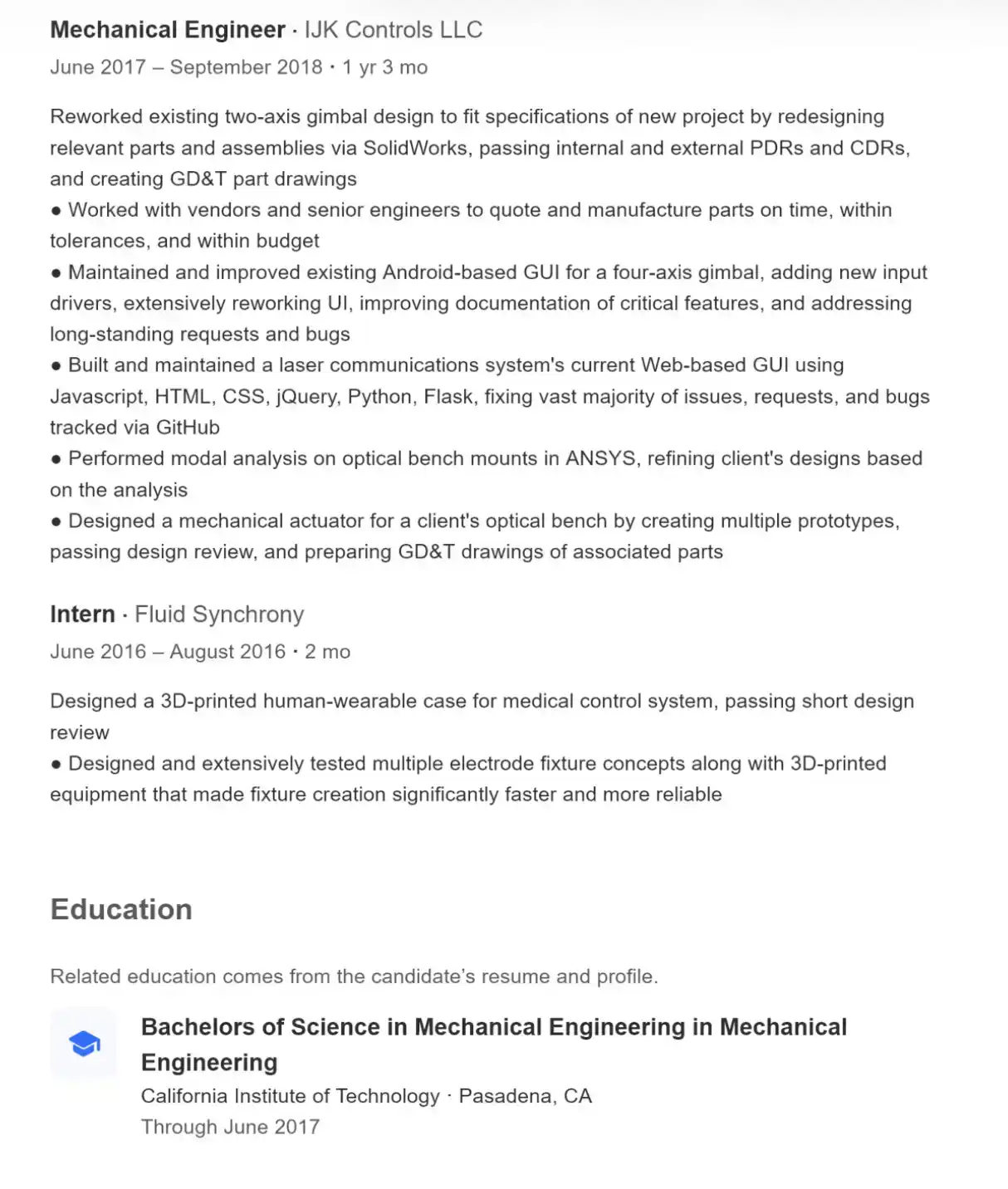 艾伦于 2017 年毕业于加州理工学院,这所位于帕萨迪纳的理工名校培养出 24 位诺贝尔奖得主,并孕育了美国国家航空航天局的喷气推进实验室(JPL)。他主修机械工程,毕业后进入南加州一家小型工程公司 IJK Controls LLC 工作,从事精密硬件研发——这些技术用于在运动平台上稳定相机和传感器,广泛应用于无人机、卫星以及军事瞄准系统。同时,他还参与开发利用激光而非无线电波在设备之间传输数据的软件。