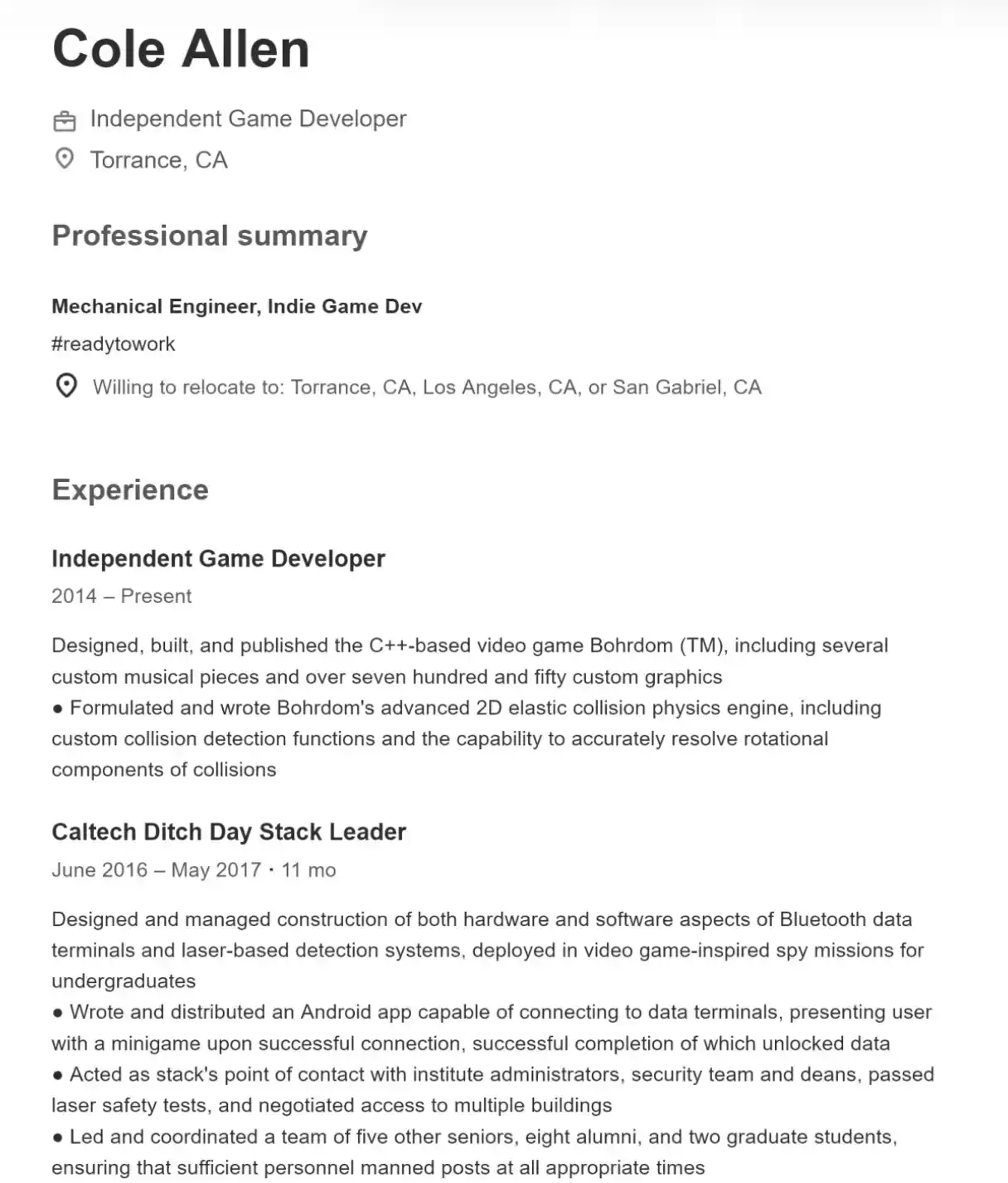 他还自己开发电子游戏——不是在现有游戏基础上修改,而是从零开始构建。他最具代表性的作品《Bohrdom》完全由他独立完成:包括控制物体运动与碰撞的底层物理系统、750 幅原创图形,以及由他亲自创作的配乐。