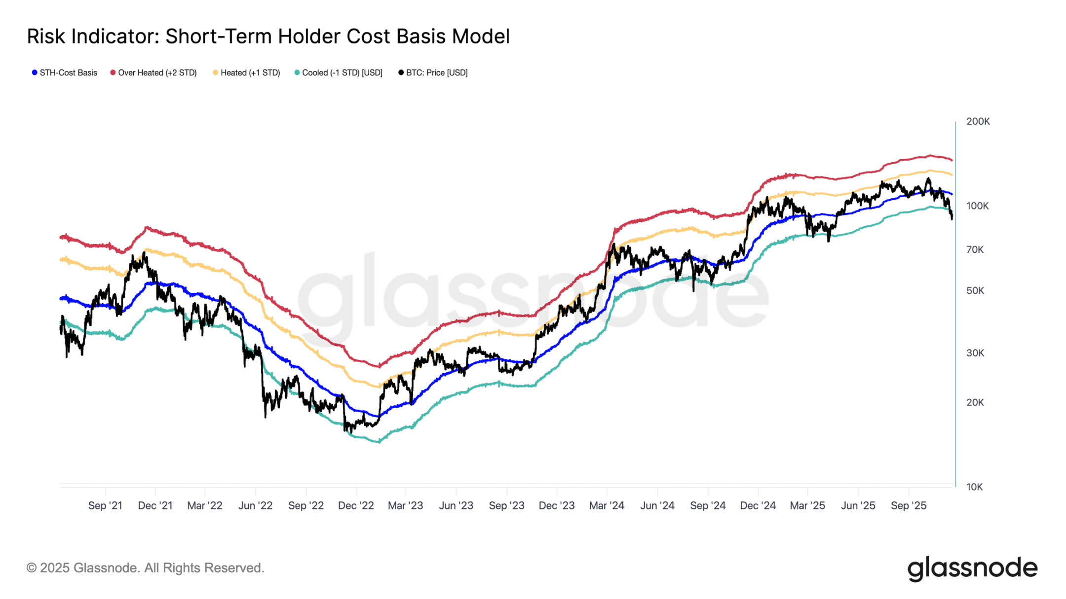 然而,若果断跌破该价格水平,将是本轮周期中价格首次低于活跃投资者成本基准,这将是熊市动能主导市场的明确信号。