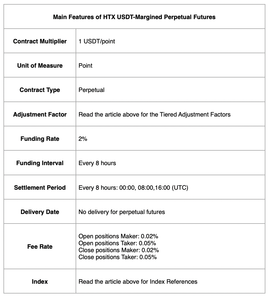 In response to market fluctuations and risk factors, HTX may adjust the above parameters to ensure the safety of your assets. Please refer to the real-time parameters on the trading page for the most up-to-date information.