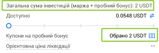 4. При додаванні маржі для бота, що працює, ви все ще можете використовувати купони на пробні бонуси для ф'ючерсної сітки.