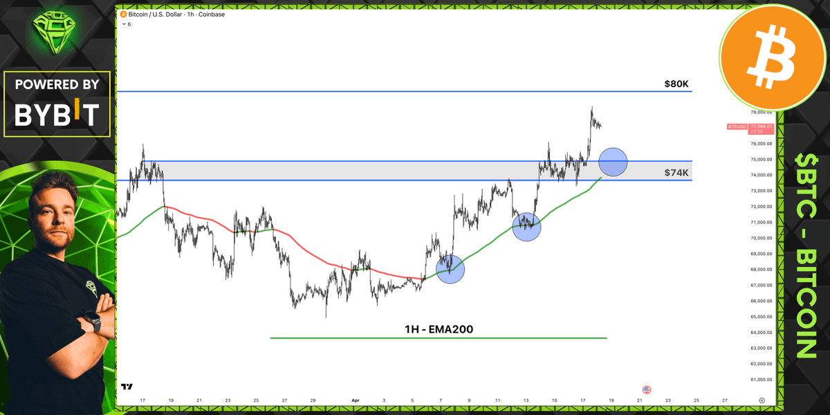 Clearly, bulls are in control and they might attempt a further push higher to $80K.
