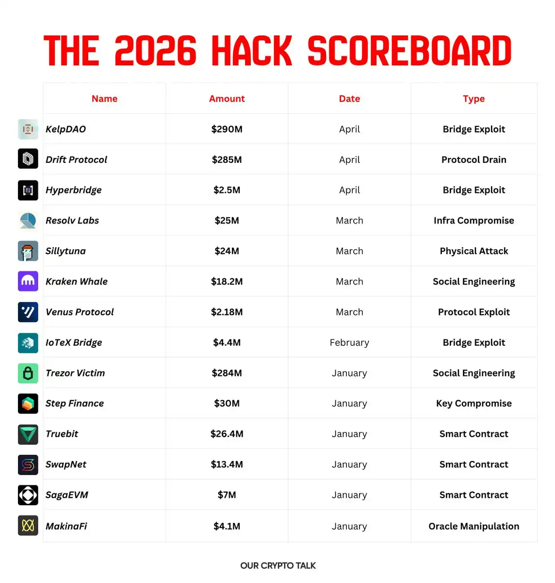 Bảng xếp hạng hacker năm 2026 (Nguồn: Our Crypto Talk)