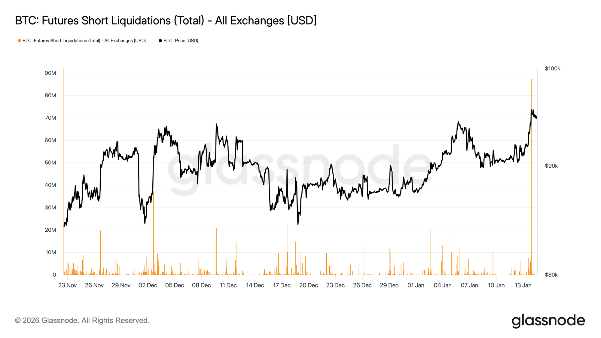 Trong khi đợt đẩy giá vào vùng 96K được củng cố một cách cơ học bởi các lệnh thanh lý vị thế bán khống, nó cũng diễn ra trên khối lượng phái sinh tương đối thấp. Doanh thu hợp đồng tương lai vẫn thấp hơn nhiều so với hoạt động sôi động được thấy trong hầu hết năm 2025, ngay cả khi giá giành lại các mức cao hơn.